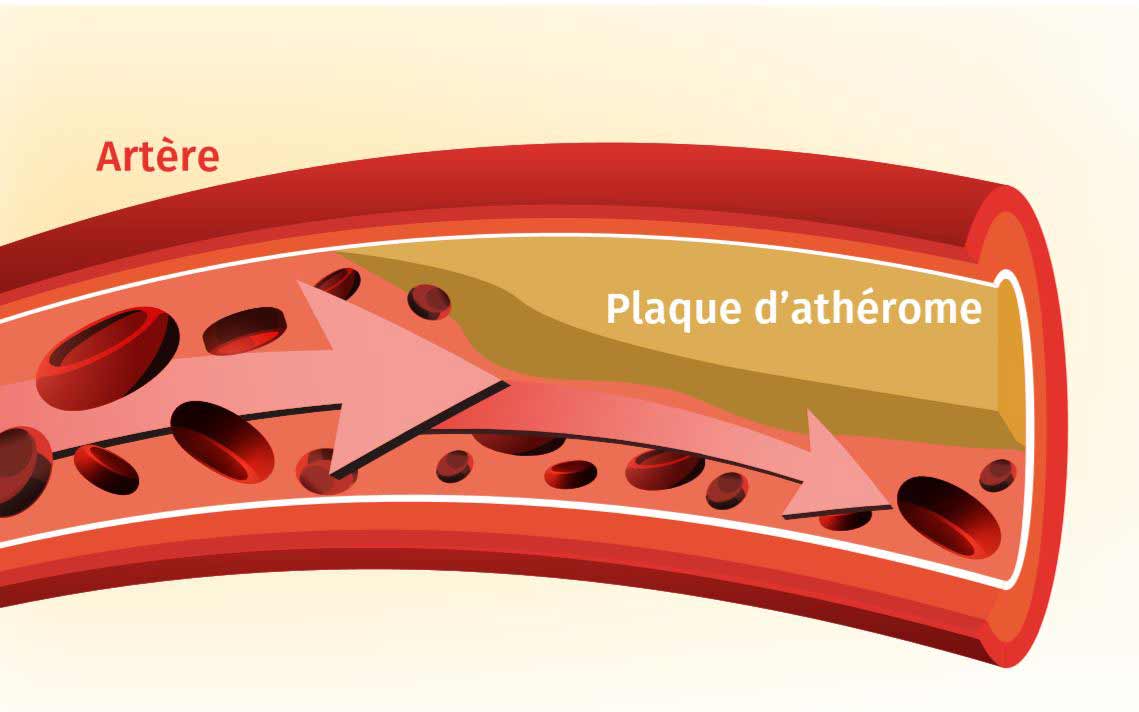 L’excès de cholestérol contribue à la formation de plaques dans la paroi des artères (athérosclérose). Elles peuvent se rompre ou également finir par boucher les vaisseaux, ce qui augmente considérablement le risque d’accidents cardiovasculaires.