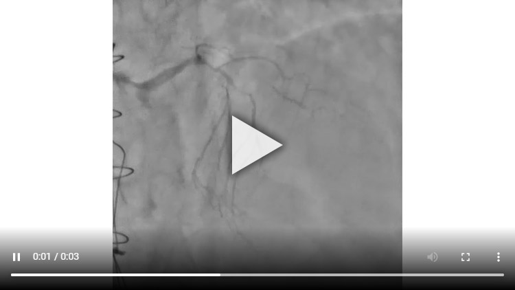 En effet, sur la coronarographie initiale, le réseau natif est quasi occlus, avec une subocclusion longue de l’IVA proximale donnant les premières branches septales, une occlusion chronique de la 2e diagonale, une occlusion chronique de la Cx proximale et de la CD ostiale.