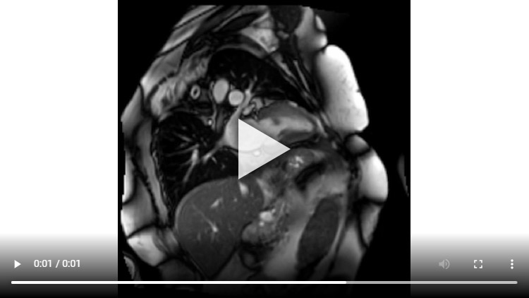 Vous pouvez voir sur l’image la présence d’artéfacts métalliques (flèches bleues) correspondant aux fils de sternotomie Important de noter que ces artéfacts ne posent aucun problème pour l’interprétation des images d’IRM cardiaque.